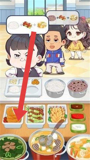1、訂單處理流程:進(jìn)入手游后上方界面顯示學(xué)生的點(diǎn)餐需求,玩家需根據(jù)提示快速選取對(duì)應(yīng)菜品,通過(guò)拖拽或點(diǎn)擊完成打飯,在時(shí)間內(nèi)提交訂單獲取分?jǐn)?shù)。