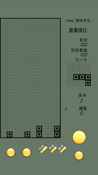 2、方塊操控方法:通過(guò)左右按鈕更改方塊位置,大按鈕旋轉(zhuǎn),小按鈕加速下落消除方塊。