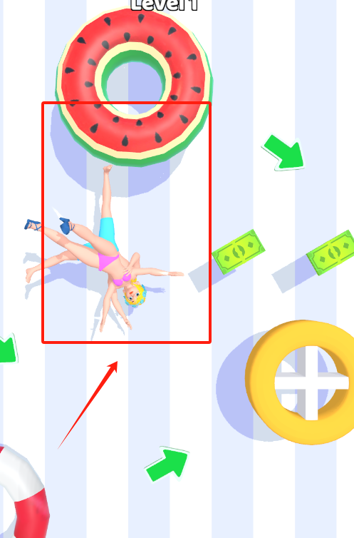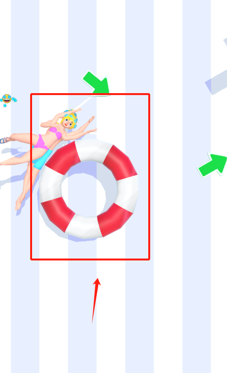 2、滑行中引導(dǎo)角色觸碰救生圈、西瓜泳圈等道具,借助道具效果,調(diào)整滑行軌跡,躲避障礙。