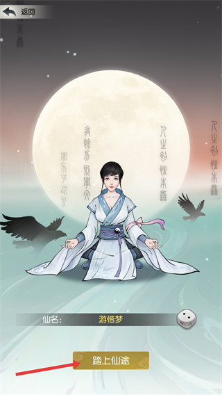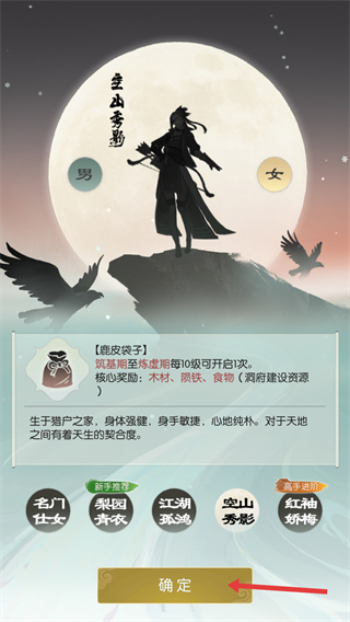 1、游戲開局可選擇空山秀影等身份,確定后開啟修仙之旅,不同身份有不同背景和資源獎勵。