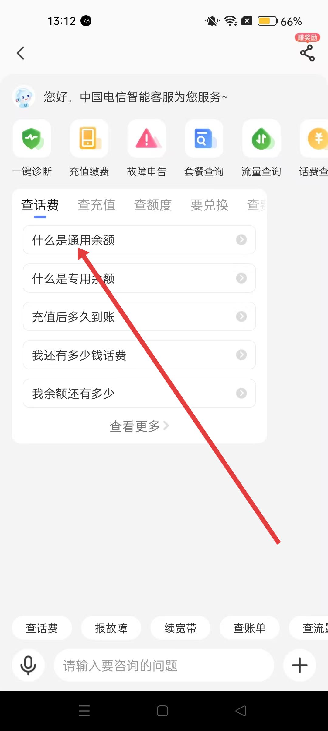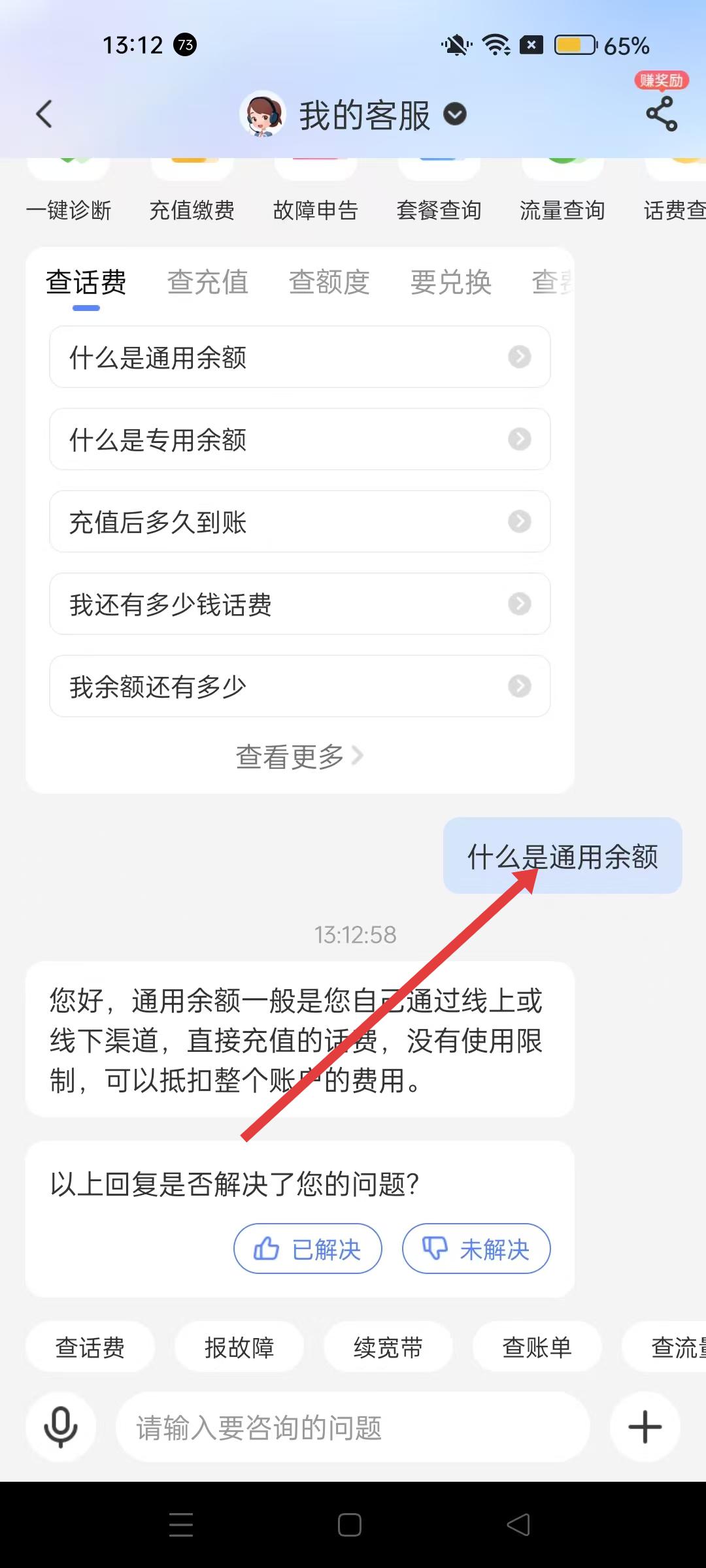 2、智能客服頁面選擇查話費分類下的什么是通用余額問題,客服會給出詳細解答。