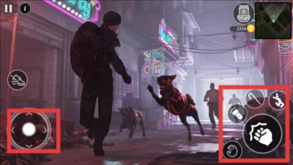 1、熟悉左側(cè)搖桿紅框控制移動(dòng)、右側(cè)按鍵攻擊、互動(dòng)等,在城市街道探索,利用環(huán)境掩體應(yīng)對(duì)敵人。