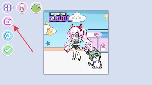 2、場景布置操作:創(chuàng)建角色后打造場地背景,將角色放入場景,自由添加裝飾并拍照保存,記錄創(chuàng)意成果。