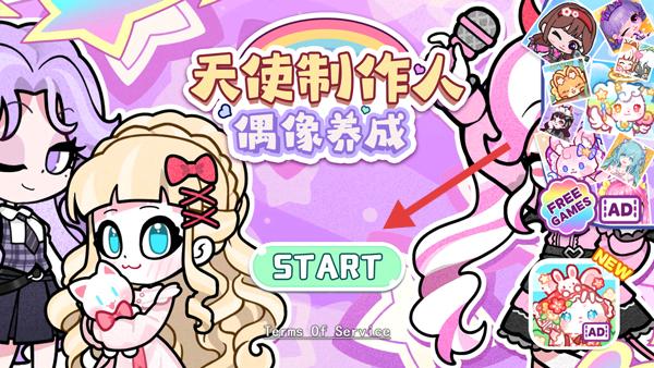 1、下載并安裝好后打開天使制作人偶像養(yǎng)成進入游戲,點擊start開始。