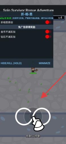 1、游戲初始界面,按提示滑動(dòng)【拖動(dòng)以移動(dòng)】按鈕,熟悉角色移動(dòng)操作,可查看【免廣告獲得獎(jiǎng)勵(lì)】等福利,按需使用。
