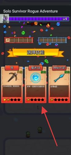 3、升級(jí)后出現(xiàn)【選擇技能】界面,根據(jù)戰(zhàn)斗風(fēng)格選【弩】【防護(hù)球】【神秘的箭】等技能,搭配build,提升生存和戰(zhàn)斗能力。
