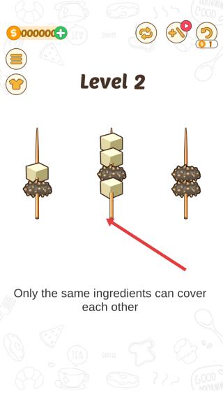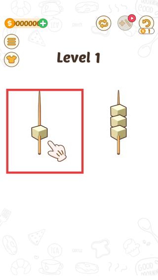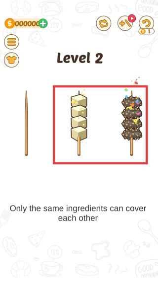 3、玩家將游戲里面的物品,全部都和相同的食物串好,玩家即可游戲闖關成功,繼續(xù)下一關游戲。