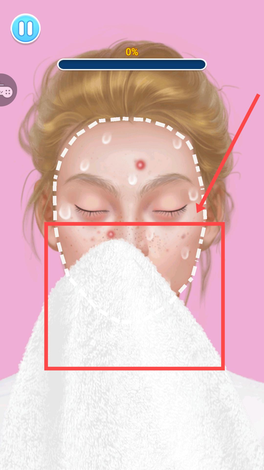 3、潔面后,使用白色毛巾道具,覆蓋臉部對應(yīng)區(qū)域,進(jìn)行擦拭,完成清潔步驟,推進(jìn)美妝改造進(jìn)程。
