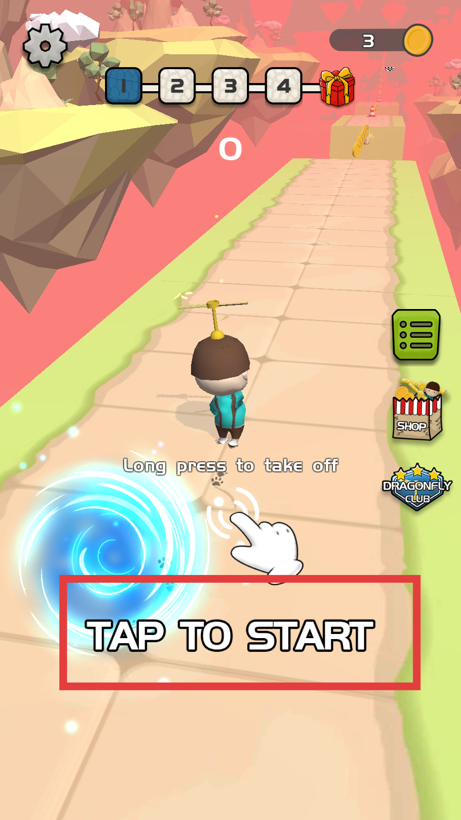1、游戲開始時(shí),點(diǎn)擊【TAP TO START】按鈕,進(jìn)入游戲界面,控制角色飛行。