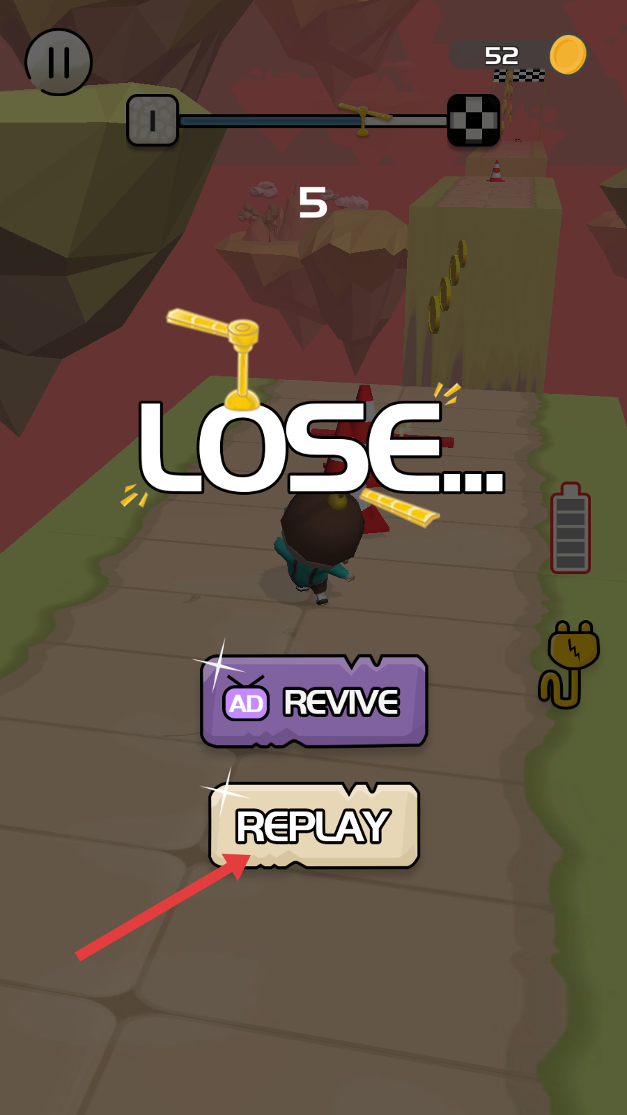 3、如果游戲失敗,可點(diǎn)擊【REPLAY】按鈕重新開始游戲,繼續(xù)挑戰(zhàn)當(dāng)前關(guān)卡。