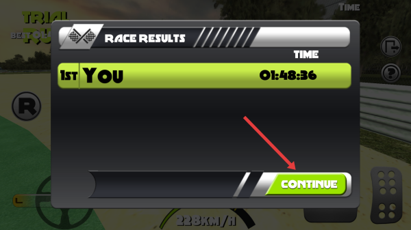 3、完成賽程后,比賽結(jié)果界面顯示1st YOU排名,點(diǎn)擊綠色CONTINUE按鈕進(jìn)入下一環(huán)節(jié)或查看獎(jiǎng)勵(lì)。