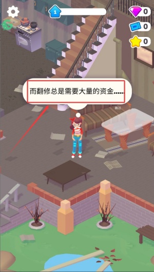 1、輕觸屏幕中的對(duì)話氣泡圖標(biāo),仔細(xì)閱讀游戲主人公的詳細(xì)背景故事,深入了解這個(gè)溫馨房屋改造任務(wù)的特殊由來與深刻意義。