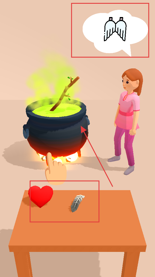 1、觀察上方提示的目標(biāo)物品,從桌上道具里找出對應(yīng)的,拖進(jìn)鍋中完成魔藥制作。