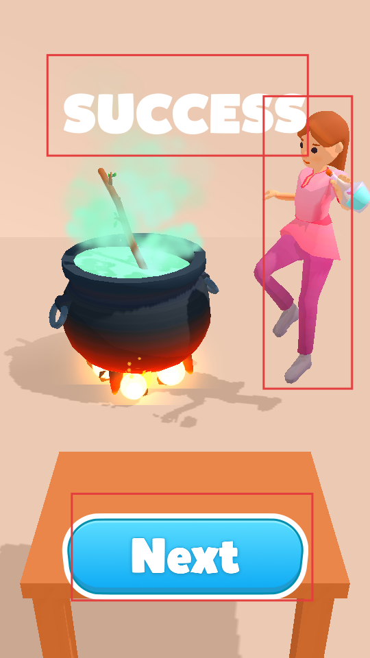 2、制作成功后,畫面顯示成功信息,人物做出慶祝動作,點(diǎn)擊下方按鈕開啟新關(guān)卡。