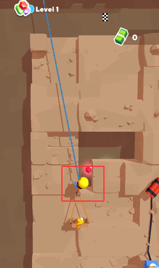 1、啟動游戲后通過虛擬搖桿操控礦工角色,深入礦山開始挖掘作業(yè),每次點擊挖掘鍵都會開采礦石。