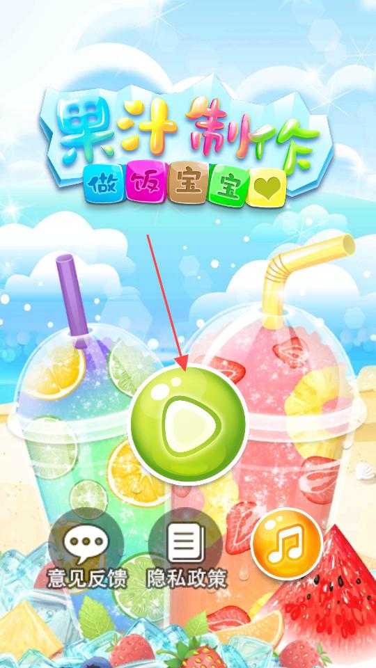 1、打開佳作后,找到果汁制作模塊,點(diǎn)擊界面中間綠色帶三角的播放按鈕,即可進(jìn)入果汁制作的具體流程開始操作。