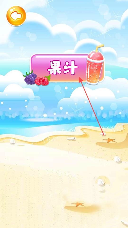 2、進(jìn)入新界面后看到帶有果汁圖案和文字的粉色標(biāo)識,點(diǎn)擊該標(biāo)識就能正式開啟果汁制作環(huán)節(jié),進(jìn)入到制作場景。