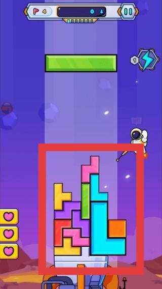 3、調(diào)整好位置,下落方塊,將其堆在基座,注意愛(ài)心血量,保持堆疊穩(wěn)定,達(dá)成目標(biāo)進(jìn)入下一關(guān)。
