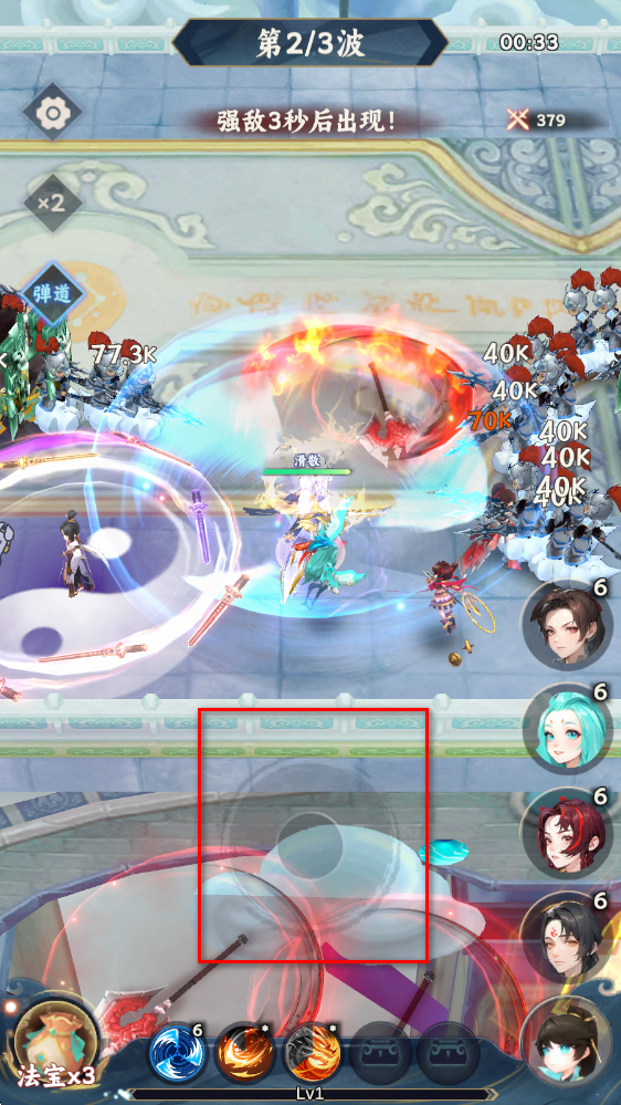 4、可使用技能和法寶攻擊敵人,造成大量傷害,同時注意強敵出現時間,做好戰(zhàn)斗準備。