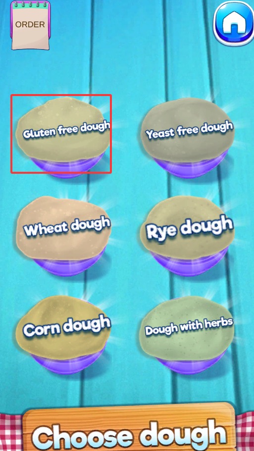 1、游戲開始先選要做啥好吃的,蛋糕、披薩隨便挑,選好了就準(zhǔn)備開工啦。