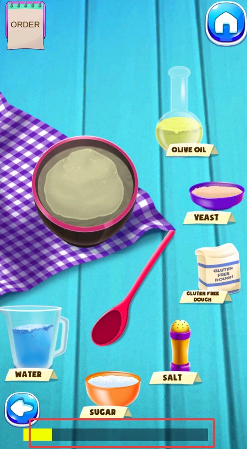 3、跟著步驟慢慢來,和面、攪拌、烘烤,底下有條進(jìn)度條會(huì)提醒你做到哪一步了。