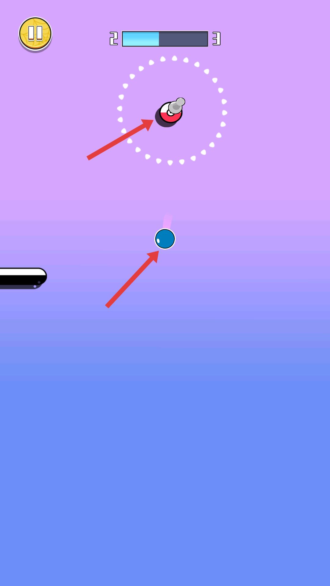 2、關(guān)注藍(lán)色小球和上方的機(jī)關(guān),找準(zhǔn)時(shí)機(jī),通過操作讓藍(lán)色小球與機(jī)關(guān)互動(dòng),推進(jìn)游戲進(jìn)程。