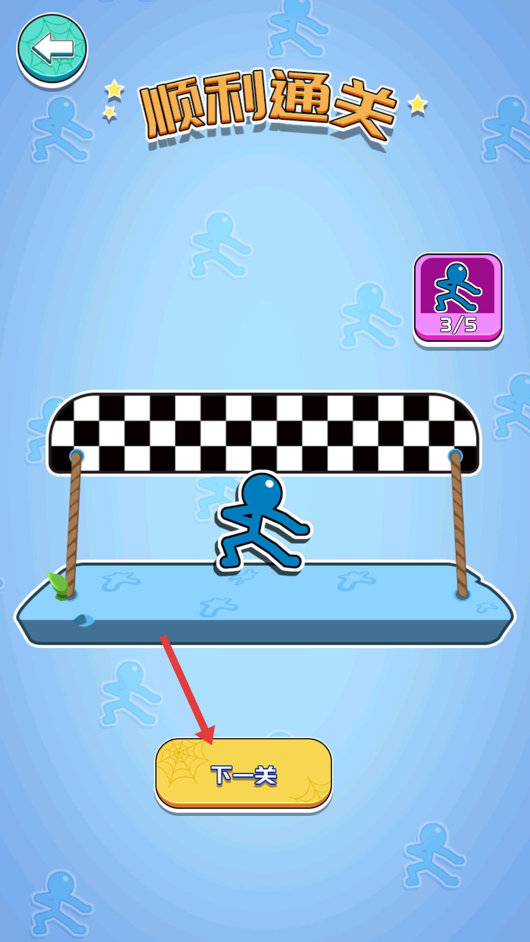 4、成功通關(guān)后,點(diǎn)擊【下一關(guān)】按鈕,進(jìn)入新的關(guān)卡,繼續(xù)挑戰(zhàn),開啟新一輪的冒險(xiǎn),體驗(yàn)更多游戲內(nèi)容。