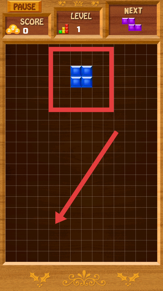 2、進(jìn)入游戲后會(huì)有不同形狀的方塊從上方掉落,玩家需要通過(guò)左右移動(dòng)、旋轉(zhuǎn)等操作,控制方塊下落至合適位置,比如圖中藍(lán)色方塊出現(xiàn)后,玩家可將其移動(dòng)到理想位置。