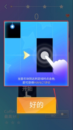 1、當(dāng)彩色音符方塊隨著節(jié)奏移動到屏幕底部的判定線時(shí),看準(zhǔn)時(shí)機(jī)點(diǎn)擊擊打,完美命中會觸發(fā)炫光特效。