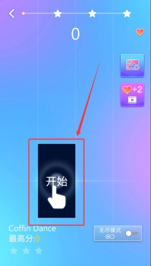 3、游戲載入完成后,點(diǎn)擊閃爍的"開始演奏"按鈕,背景燈光會隨之暗下,第一個(gè)音符即將落下。