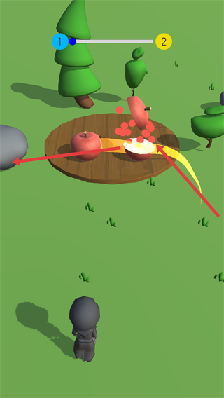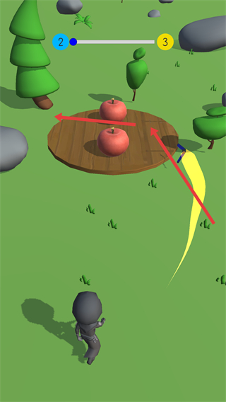 4、進(jìn)入新關(guān)卡,木盤上蘋果數(shù)量變多,繼續(xù)操控角色切割蘋果,不斷完成關(guān)卡,收獲游戲樂趣。