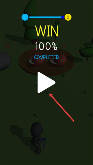 3、成功完成蘋果切割任務(wù)后,會(huì)顯示這一關(guān)你贏了點(diǎn)擊白色三角形按鈕,可繼續(xù)下一輪。