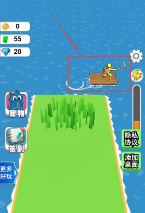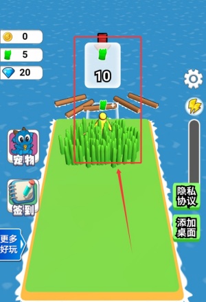 3、點擊場景中隨機生長的草叢即可進(jìn)行收割,每次點擊都能獲得1-3根小草,收集速度會隨著道具升級而提升。