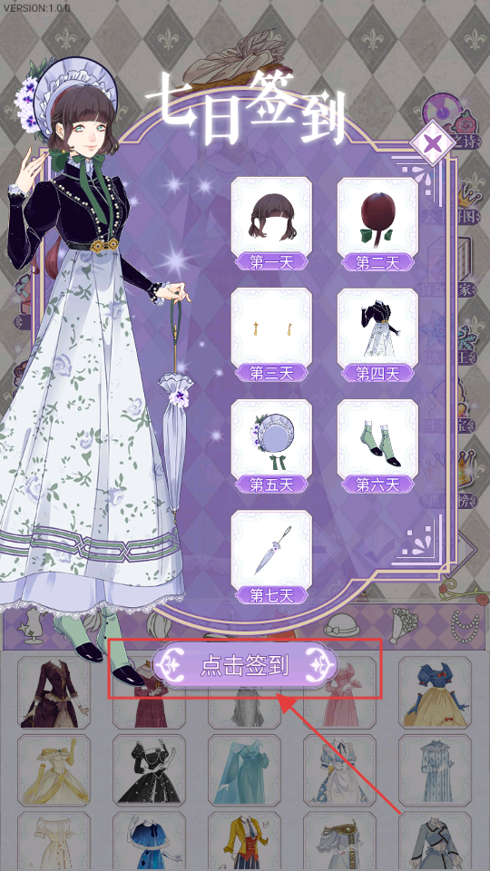 1、參與七日簽到活動,點擊簽到按鈕,每日簽到可領取對應的服飾、配飾等獎勵,累計簽到獲取更多物品。