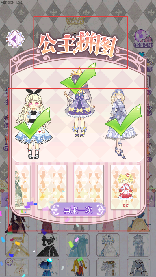 3、游玩公主拼圖玩法,將拼圖碎片組合,成功拼出公主形象,完成后可選擇再次游玩,繼續(xù)挑戰(zhàn)新的拼圖。