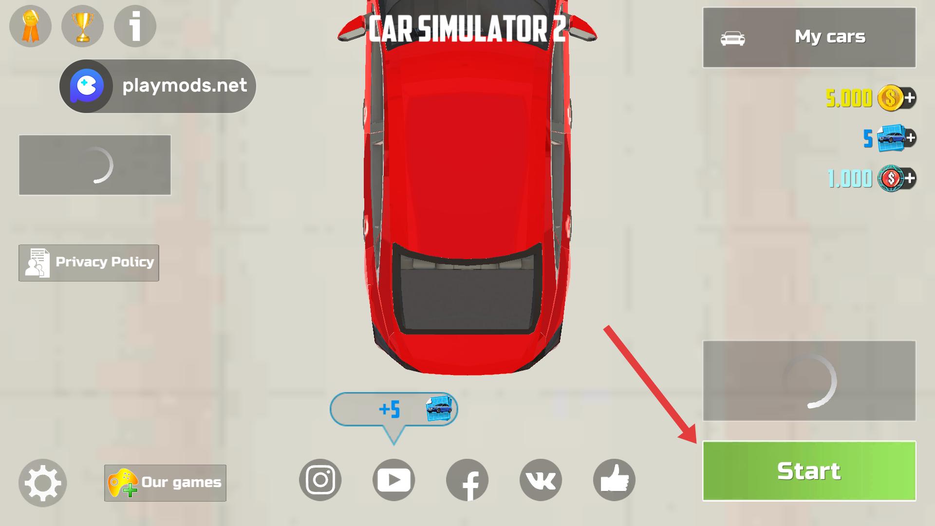 1、點擊Start進入游戲,選擇車輛,利用初始金幣與資源,可去商店升級汽車性能,為駕駛做準備。