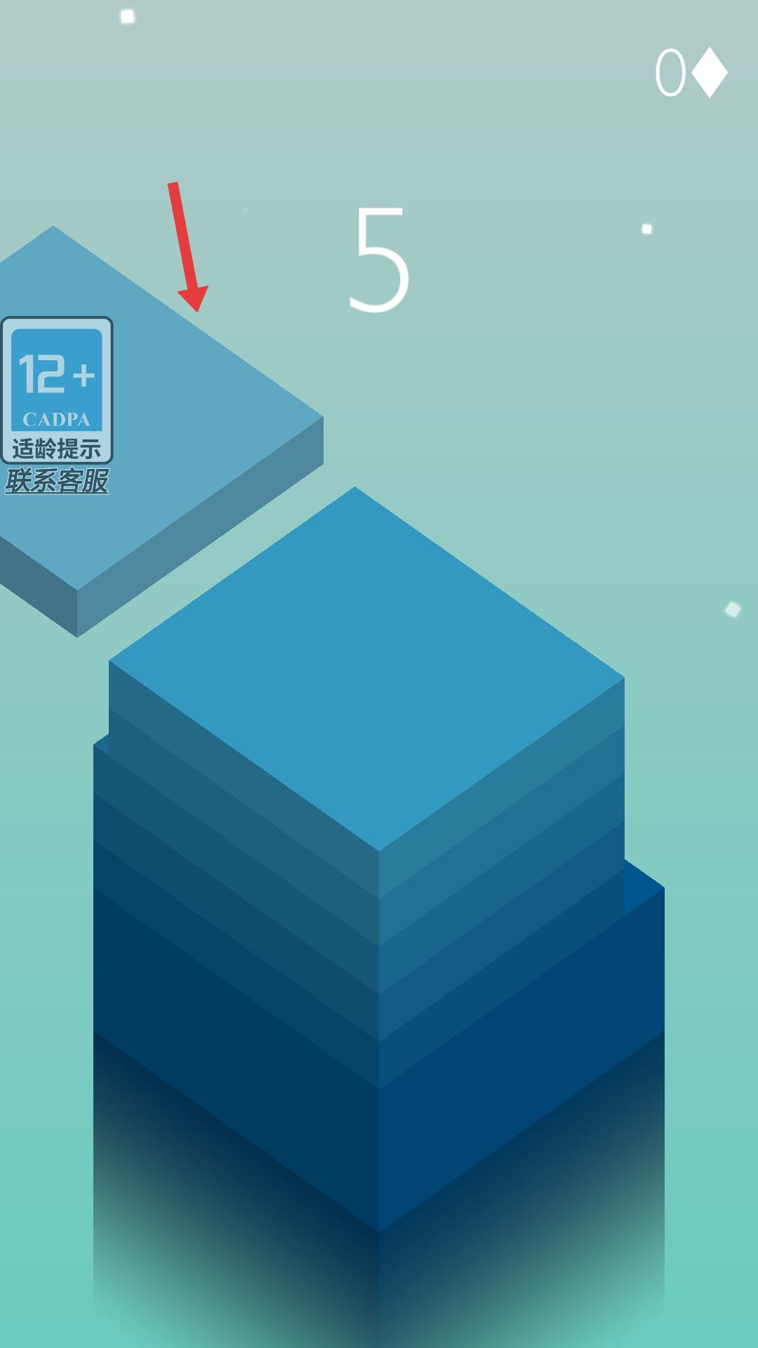 2、點(diǎn)擊屏幕,使上方方塊落至底層堆疊,注意時(shí)機(jī),保證方塊對(duì)齊,增加高度。