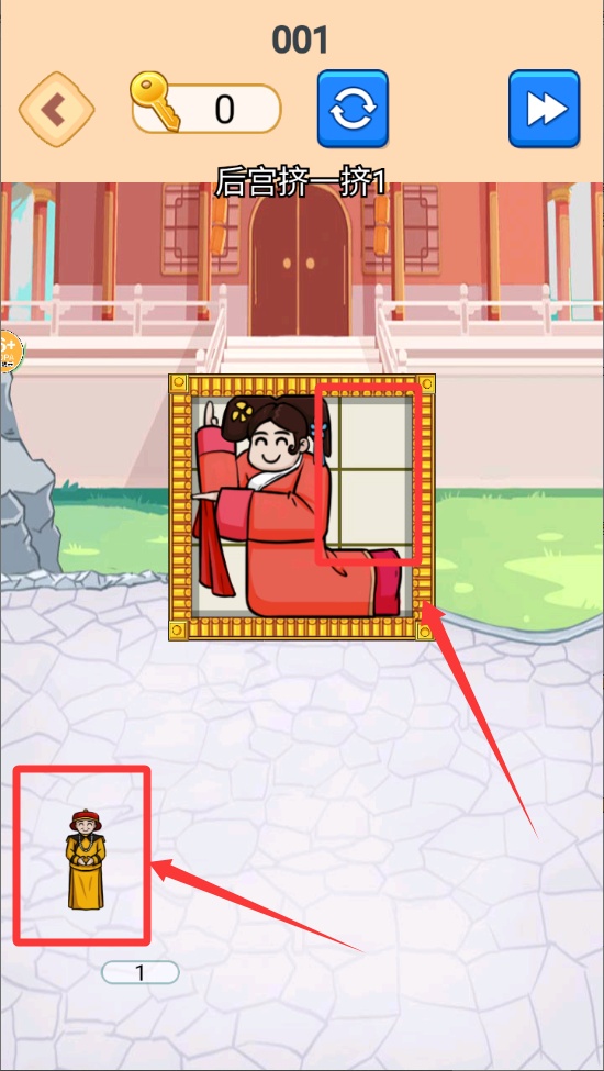 妃子擠一擠是個逗趣的拼圖小游戲,玩起來特別容易上手。游戲里有個大圖框,你得把皇帝和妃子的小人兒都塞進(jìn)去,擺對位置就能過關(guān)。關(guān)卡多得玩不完,第一關(guān)搞定了還能接著挑戰(zhàn)更難的。別看玩法簡單,其實(shí)挺考驗(yàn)眼力勁兒,得仔細(xì)觀察圖框形狀,調(diào)整小人站的位置和姿勢。有時候一個位置沒擺對,其他人都擠不下啦。