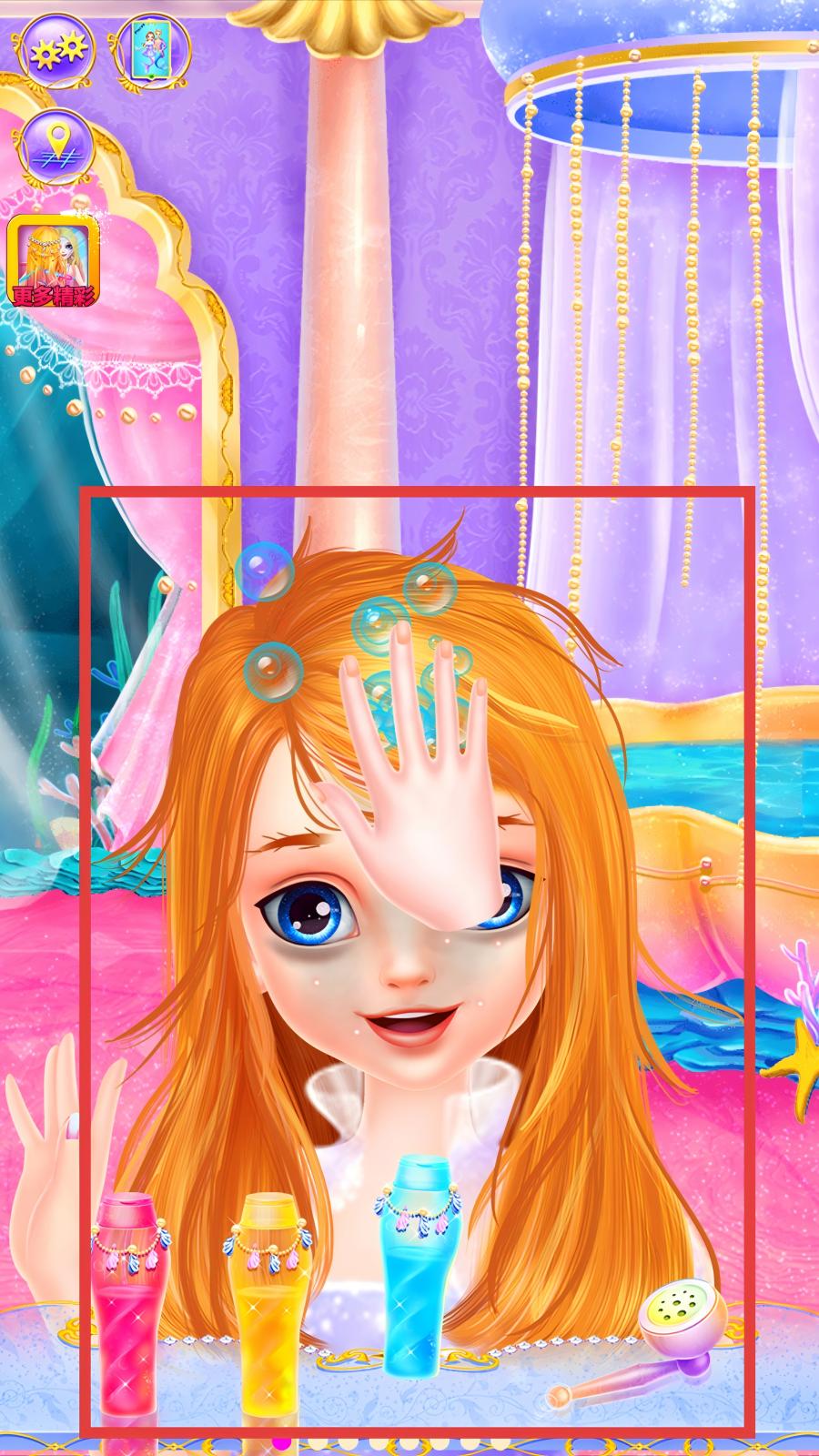 2、在公主護(hù)理場(chǎng)景,根據(jù)提示或流程依次選擇洗發(fā)水瓶,點(diǎn)擊后將洗發(fā)水涂抹在公主頭發(fā)上,配合按摩、沖洗等操作,逐步完成護(hù)理、造型打造。