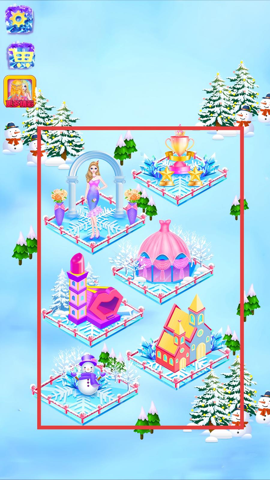 2、在場景選擇頁面,點擊目標場景,進入裝扮界面,界面展示公主角色、服裝欄、配飾欄,服裝欄有不同風格裙子,配飾欄有發(fā)型、頭飾、項鏈等。