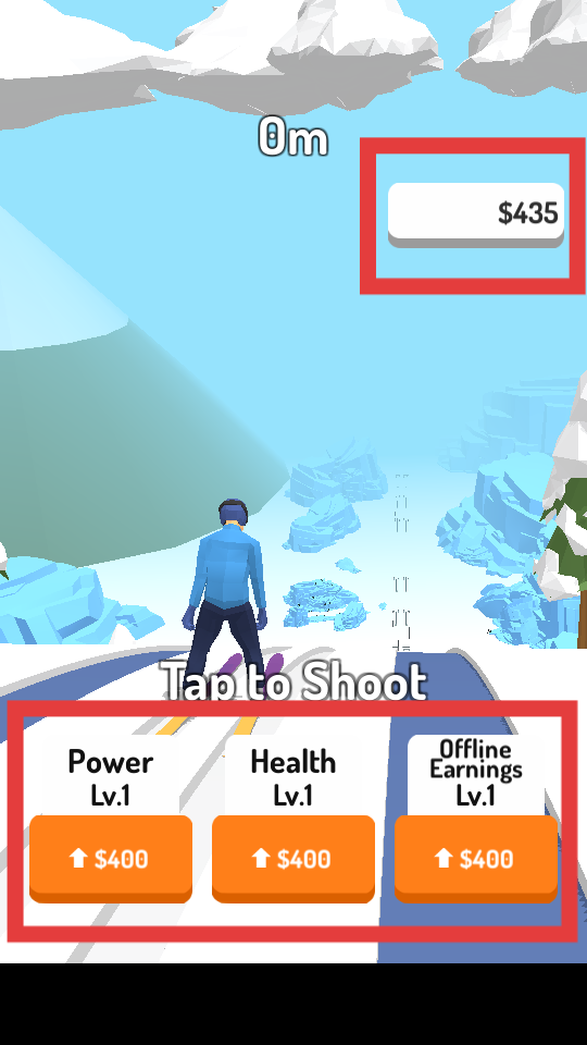 1、使用金幣升級Power、Health、Offline Earnings等屬性,提升滑雪能力,為滑雪挑戰(zhàn)做好準(zhǔn)備。