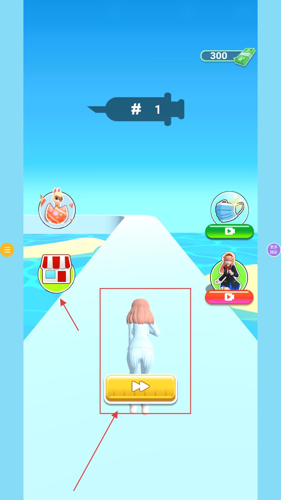 2、玩家進(jìn)入關(guān)卡后,需要操控角色在路徑上奔跑,點(diǎn)擊黃顏色按鈕可加速,還能利用場(chǎng)景中的商店等元素,獲取道具或增益。