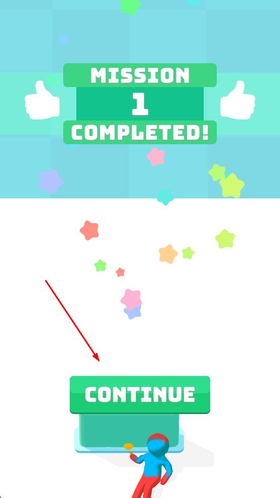 4、任務(wù)完成后,點(diǎn)擊CONTINUE按鈕,領(lǐng)取獎(jiǎng)勵(lì)并推進(jìn)至下一關(guān),持續(xù)解鎖新任務(wù),拓展游戲體驗(yàn)。