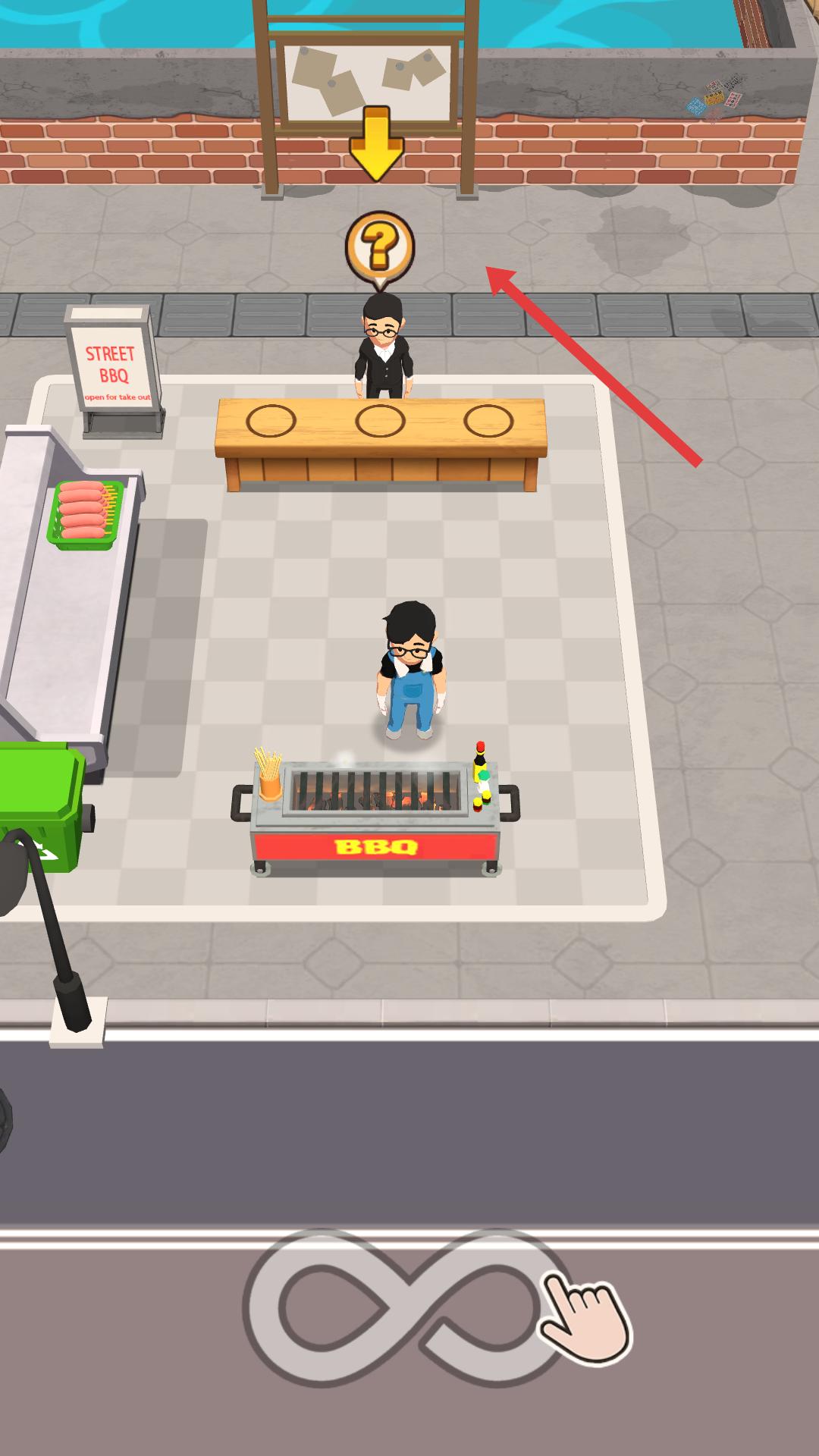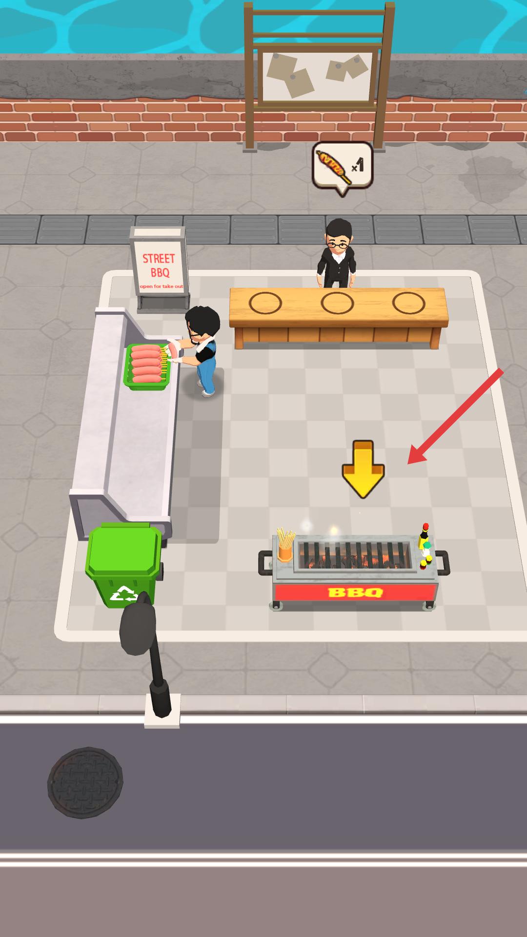 1、看到有顧客來到燒烤攤前,此時(shí)需留意顧客頭頂?shù)奶崾?,根?jù)提示去準(zhǔn)備相應(yīng)的食材,開啟為顧客制作美食的流程。