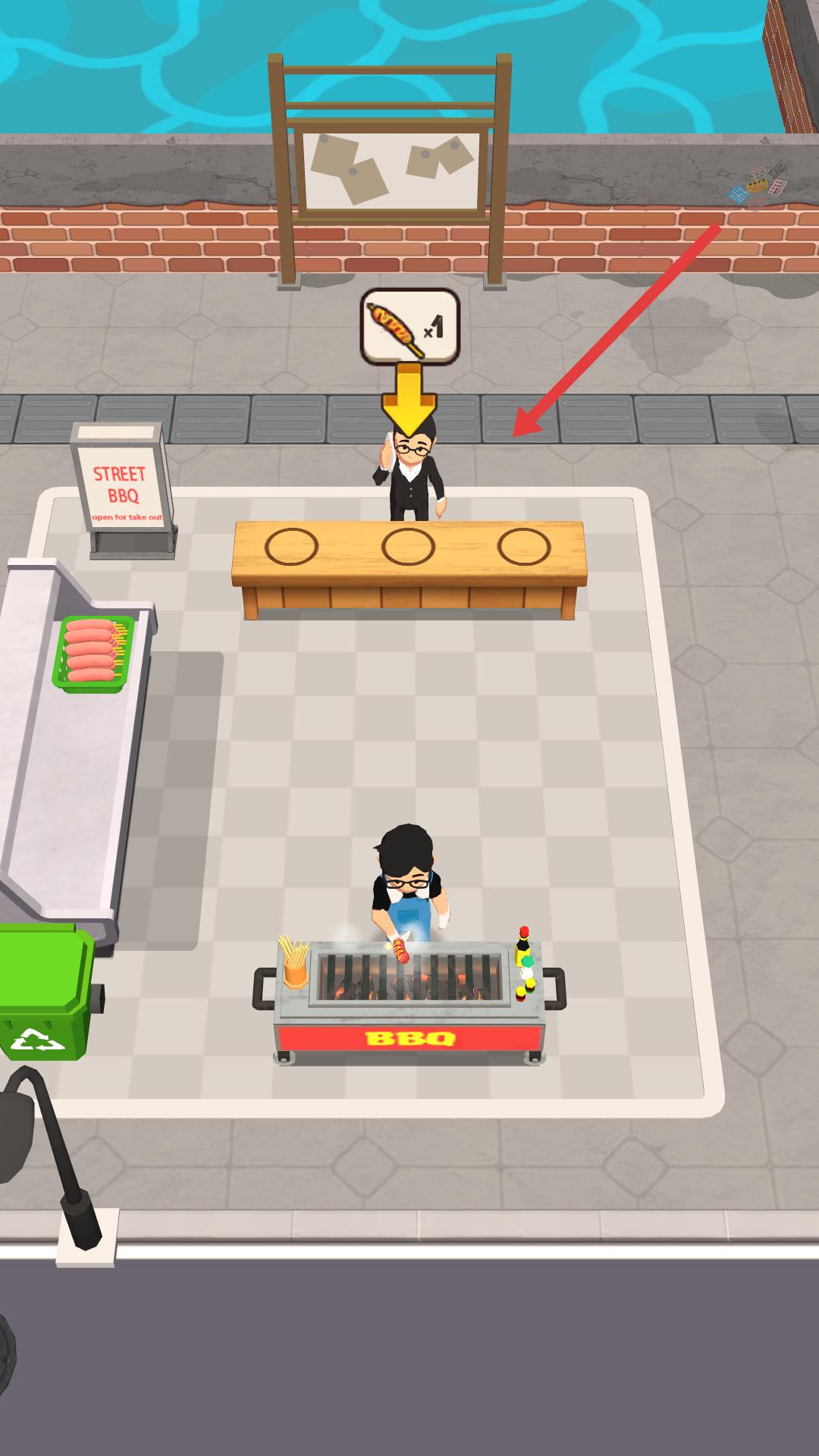 4、待食材烤制完成后,把烤好的美食遞給對(duì)應(yīng)的顧客,完成一次服務(wù),之后繼續(xù)迎接下一位顧客,重復(fù)這樣的流程來經(jīng)營(yíng)燒烤攤。