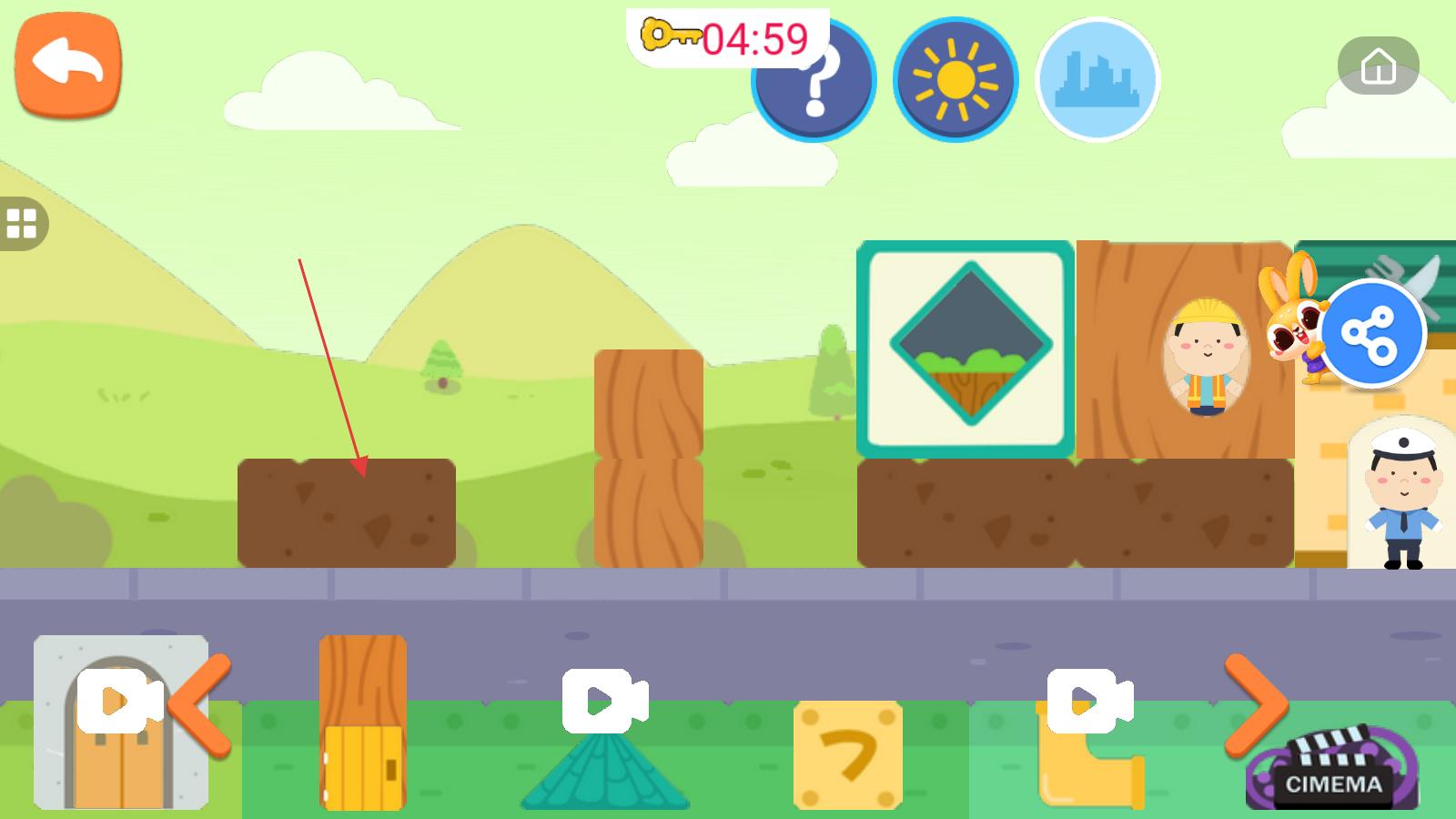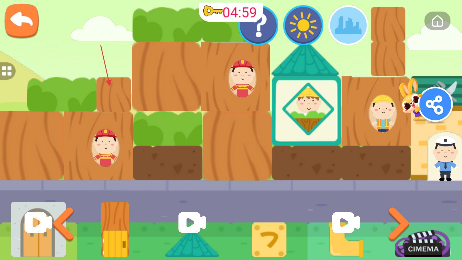 2、進入游戲關(guān)卡后,看到有不同的積木方塊和帶有卡通人物的方塊,根據(jù)提示,選擇合適的積木方塊進行操作,搭建結(jié)構(gòu)。