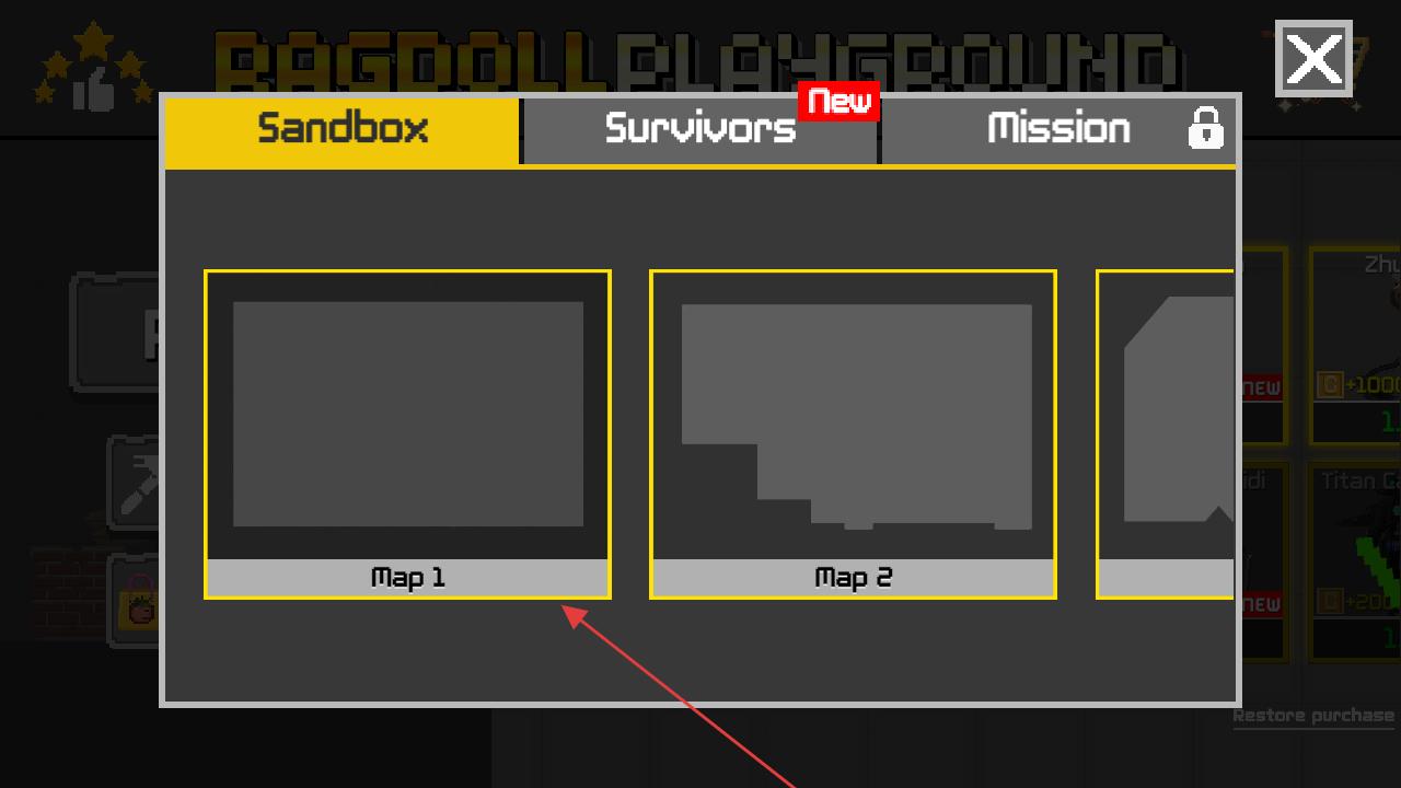 1、模式選擇界面,選擇沙盒模式下的地圖1,開啟沙盒地圖的探索與創(chuàng)作,這是開展后續(xù)操作的基礎(chǔ)步驟。
