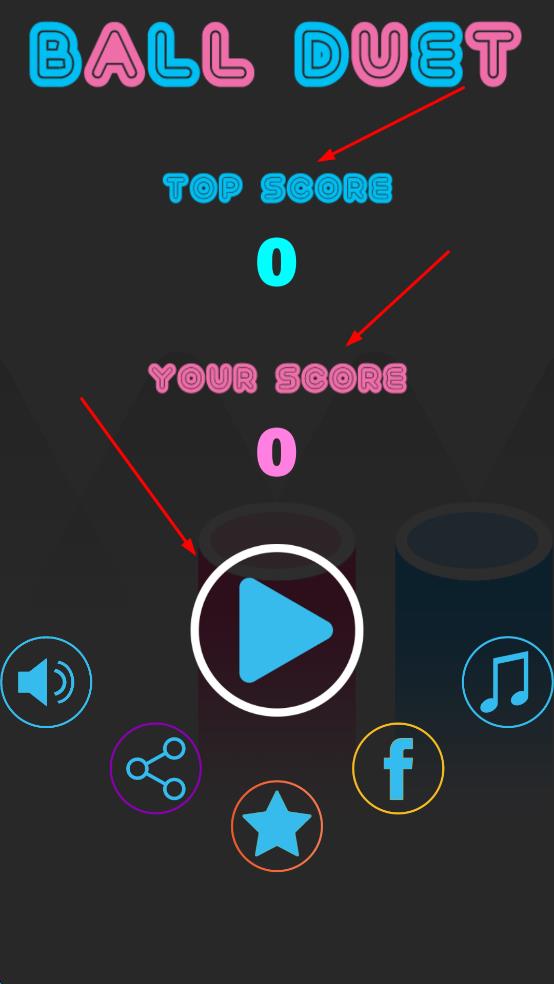 1、進入游戲主界面,點擊中間藍色播放按鈕開啟游戲。界面下方可調(diào)節(jié)音效、音樂,也能分享游戲,先熟悉功能為gameplay做準備。