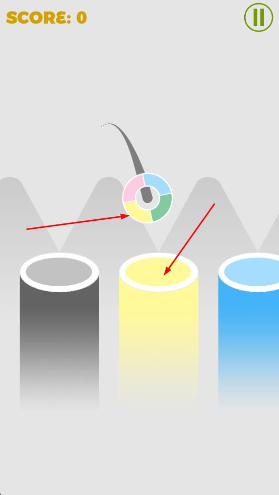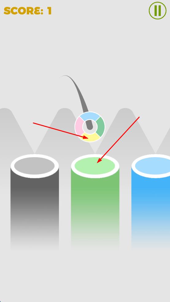 2、游戲中觀察下落圓環(huán)的顏色分區(qū),當圓環(huán)的顏色區(qū)域對準圓柱的顏色時,讓圓環(huán)落入即可得分,需精準把握時機。