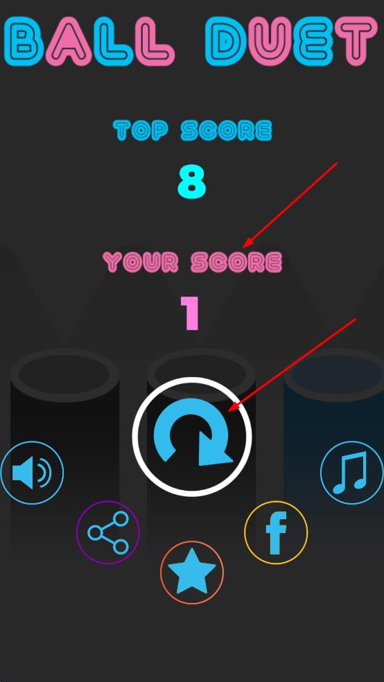 4、游戲結束后,若得分未達預期,點擊中間藍色重玩按鈕重新挑戰(zhàn),優(yōu)化時機判斷,嘗試突破自身最高紀錄刷新分數(shù)。